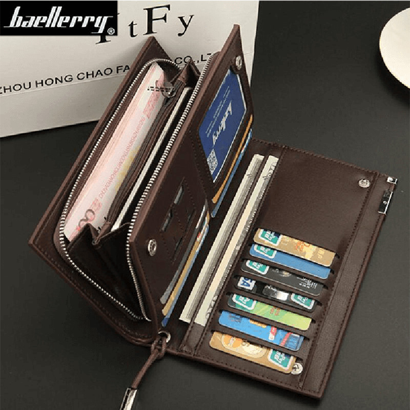 Baellerry Long Men Wallets Top Quality Male Clutch Phone Bag Leather Men Big Capacity Wallet Men Purse Zipper Coin Pocket