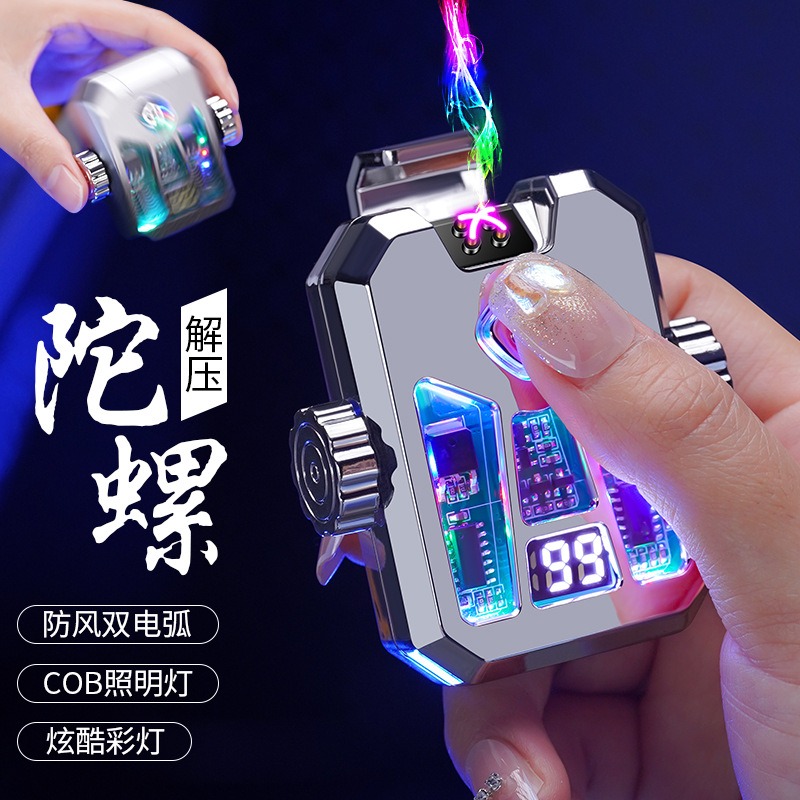 High-End Smart Black Technology Mecha Style Gyro Lighter Creative Double Arc Plasma Charging Lighting Windproof Lighter