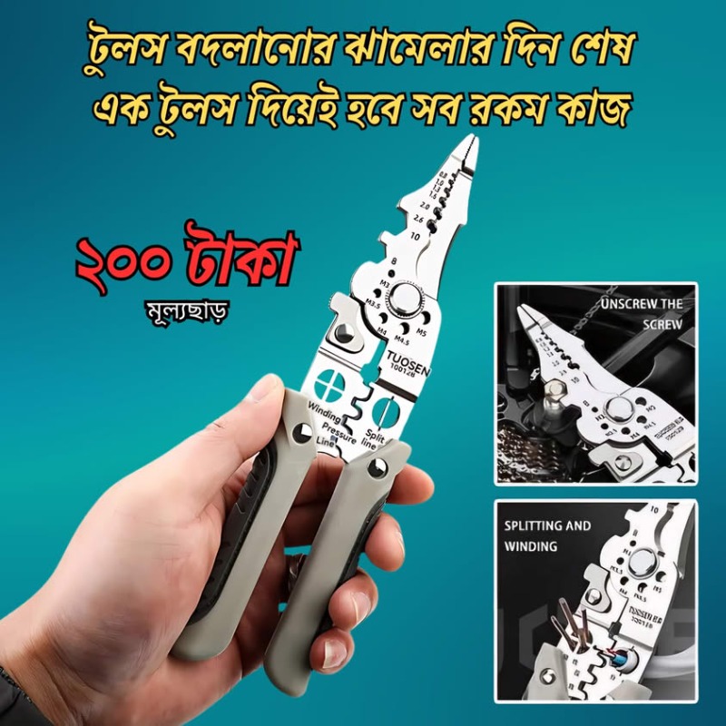 ✔ কাটা, স্ট্রিপিং, ক্রিম্পিং, উইন্ডিং, স্প্লিটিং, রেঞ্চিং।
